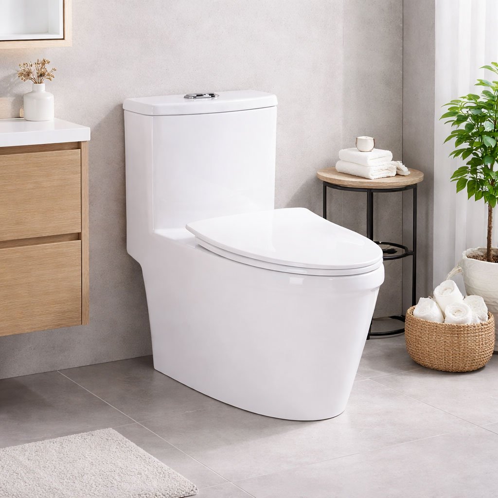 This CE certified siphonic toilet is designed for buyers who need a reliable one-piece ceramic toilet for hotels, residential projects, and wholesale distribution. Its modern minimalist design creates a clean bathroom appearance while the one-piece structure helps simplify cleaning and maintenance.