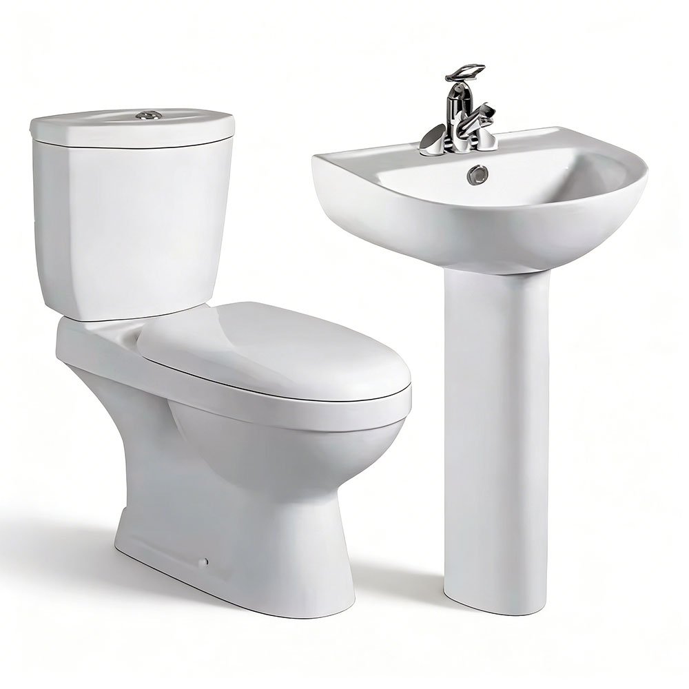 Economic Ceramic Toilet and Wash Basin Set – Dual Flush Two-Piece WC with Pedestal Basin | AIDI