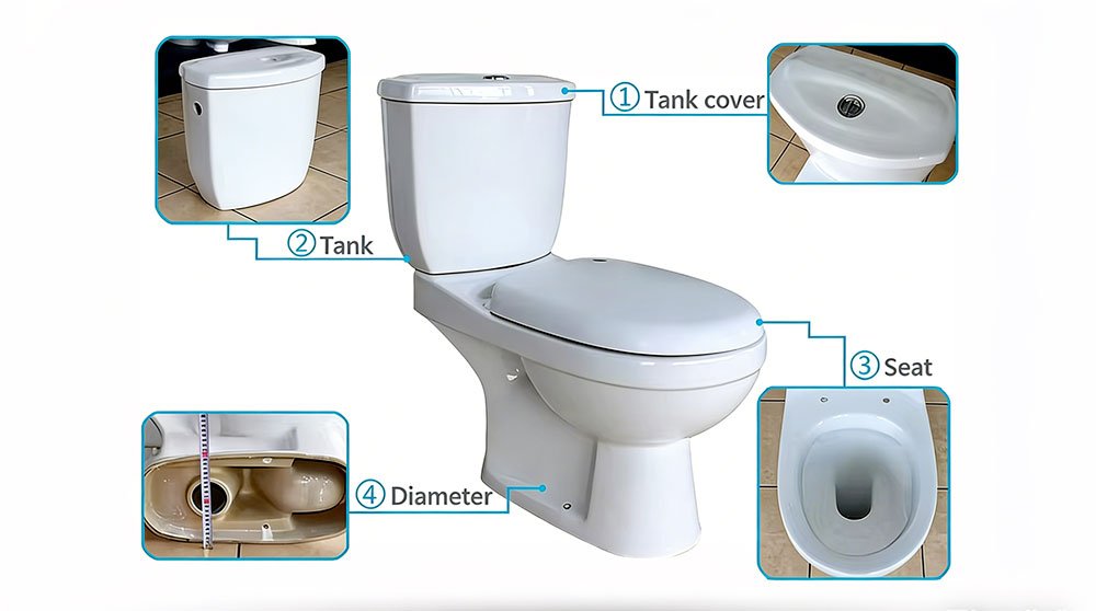 Manufactured with high-quality ceramic fired at 1280°C, the toilet and basin set provides excellent durability, structural strength, and a glossy surface finish that resists stains and discoloration.