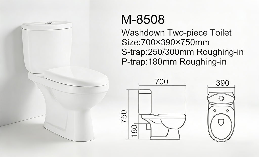 The AIDI M-8508 / M-307 Ceramic Toilet and Wash Basin Set offers a practical and affordable bathroom solution for residential, hotel, and commercial projects. Featuring a two-piece washdown toilet, water-saving dual flush system, and a durable pedestal basin, this ceramic sanitary ware set combines modern design with reliable performance.