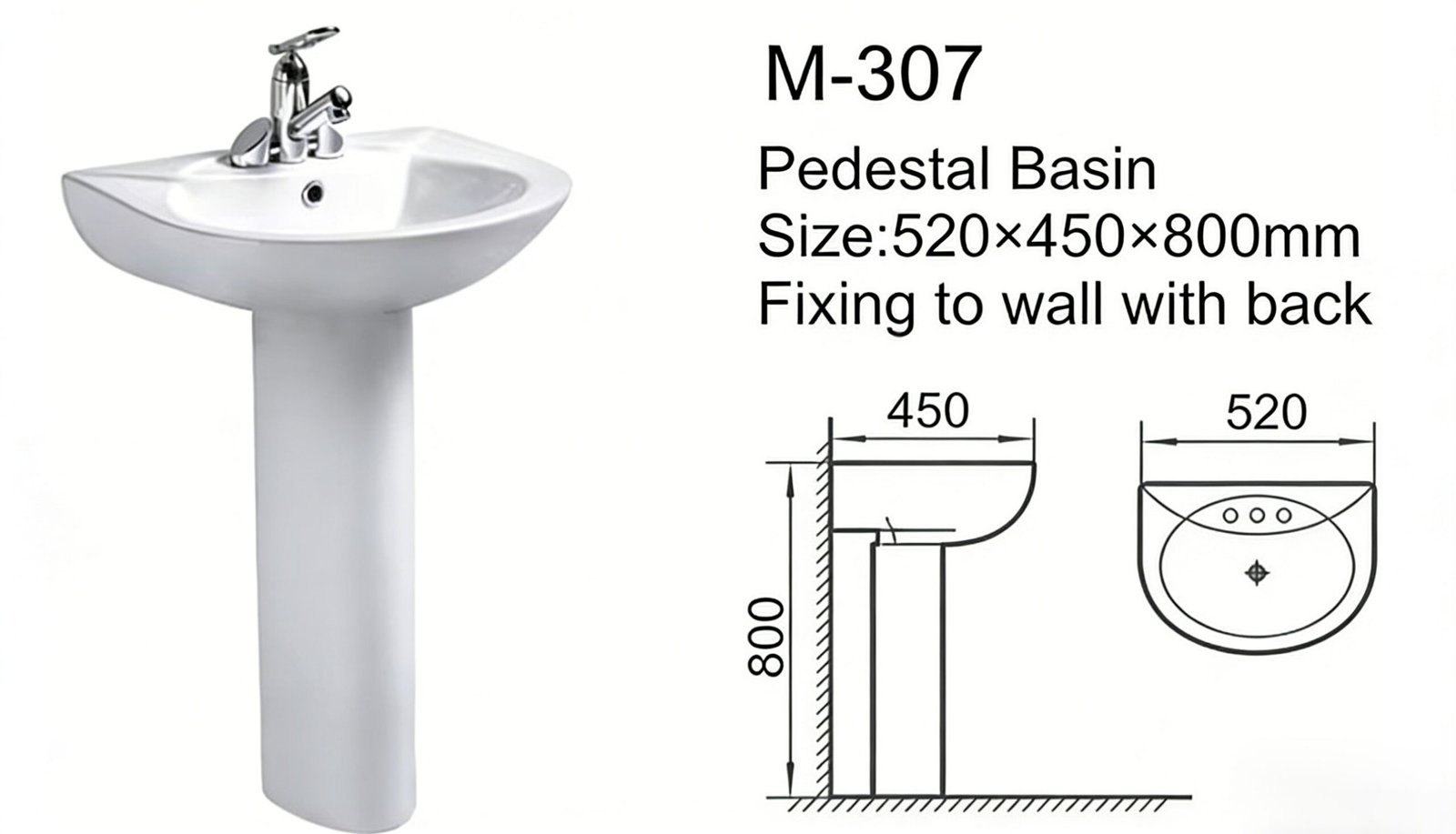 Toilet Size 700 × 390 × 750 mm Basin Size 520 × 450 × 800 mm