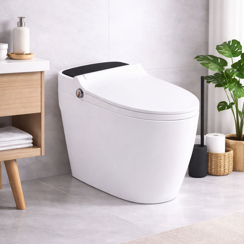 This jet siphon smart toilet is a one piece floor-mounted ceramic toilet designed for modern bathrooms, hotels, and residential projects. With automatic flushing, female wash, and a water-saving dual flush system, it offers both convenience and efficient performance for international markets.