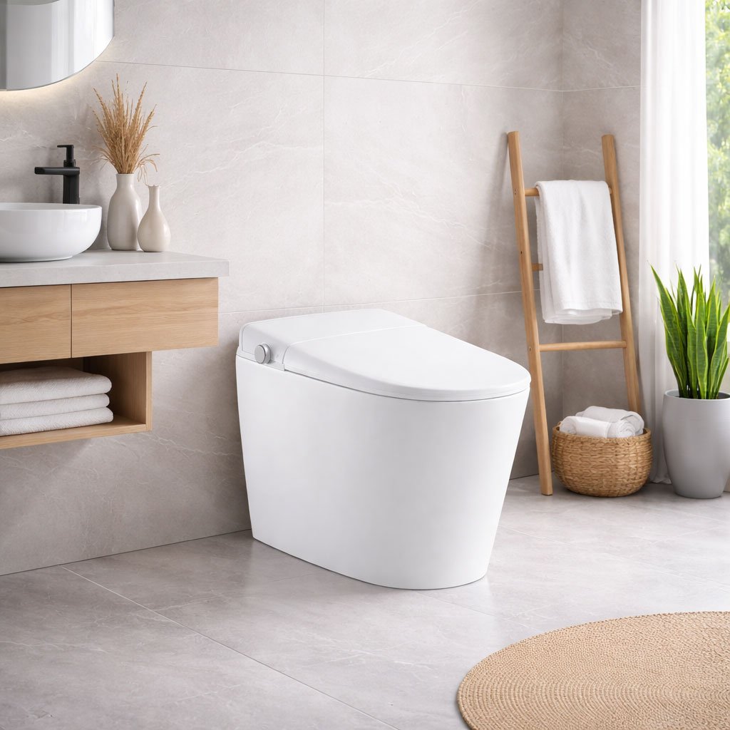 This smart toilet with LED display is designed for homeowners who want a more comfortable, hygienic, and modern bathroom experience. Its luxury one-piece design creates a clean appearance, while the integrated LED display makes operation more intuitive and user-friendly.