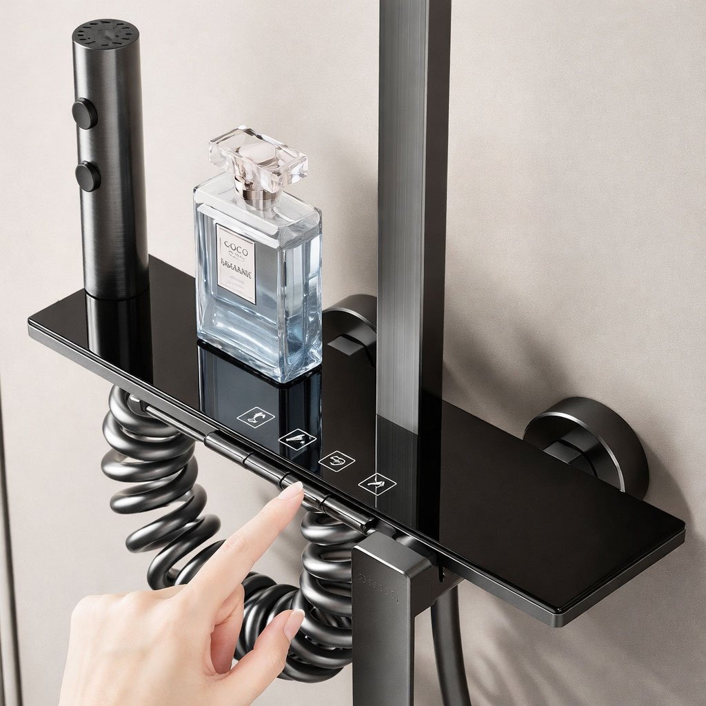 - Premium thermostatic shower system with stable temperature control for enhanced safety